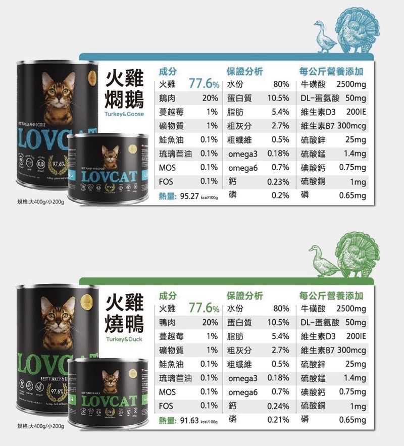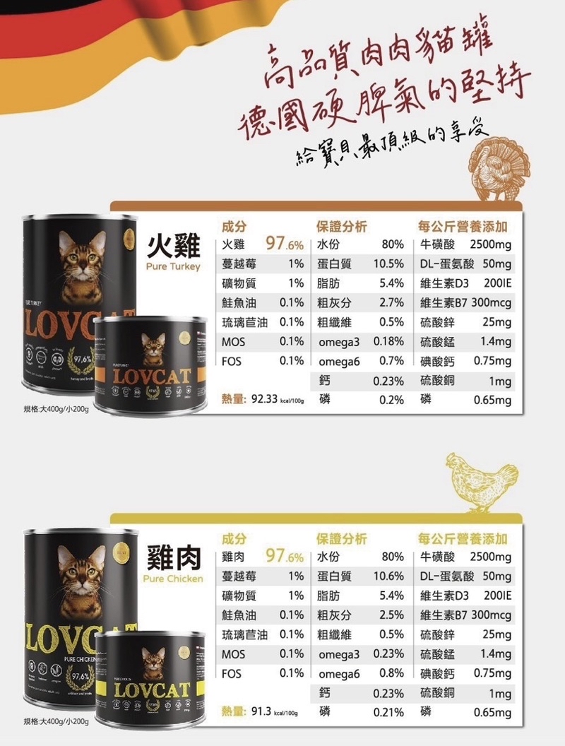 lovcat 那卡| 德國主食罐 鮮肉主食罐 德罐 貓主食罐 貓咪罐頭 貓罐頭 貓罐 200g 400g