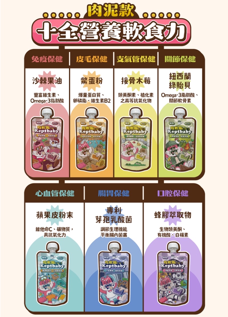 🍖多種保健品添加,滿足十全營養軟食力