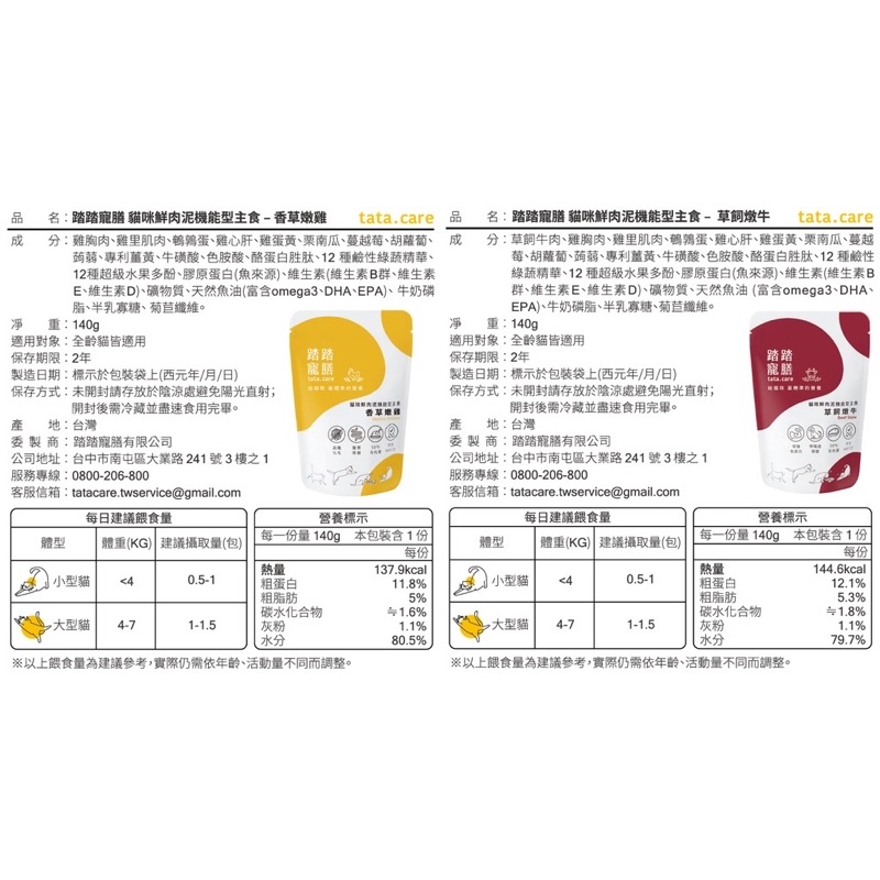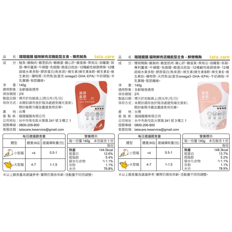踏踏寵膳 tata.care|踏踏餐包 踏踏機能型主食餐包 貓主食餐包 泥狀主食 140g